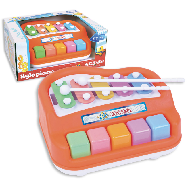 Πολύχρωμο μεταλλόφωνο – πιανάκι με νότες και μπαγκέτες. Διαστάσεις: 175x170x70 mm