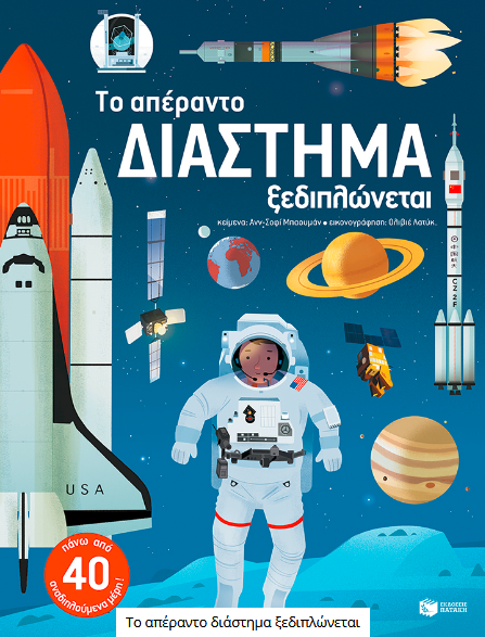 Για να απαντήσει σε αυτές τις ερωτήσεις και να μάθει τα πάντα για τα αστέρια, την κατάκτηση του διαστήματος και το σύμπαν, η Ανν-Σοφί Μπαουμάν μελέτησε πραγματικούς πυραύλους, επισκέφθηκε πλανητάρια και αστεροσκοπεία, αλλά και μίλησε με έναν αστροναύτη, έναν αεροδιαστημικό μηχανικό και με αστρονόμους… Η εικονογράφηση του Ολιβιέ Λατύκ, εντυπωσιακή αλλά και εξαιρετικά ακριβής, μας στέλνει σε ένα μοναδικό ταξίδι στο διάστημα!