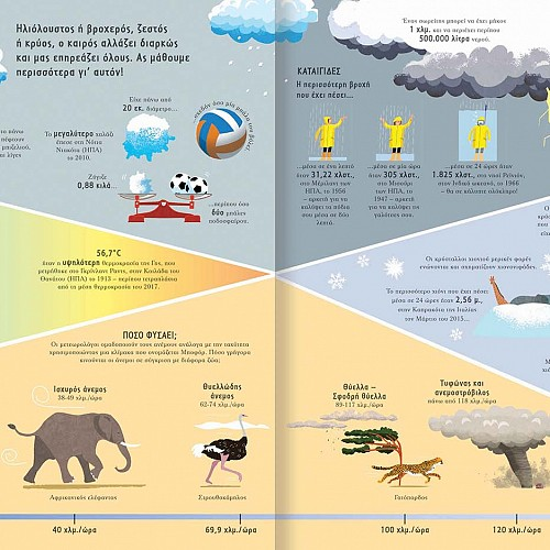 Από το μικρό στο μεγάλο, από το γρήγορο στο αργό, από το ελαφρύ στο βαρύ, από το ψηλό στο χαμηλό, αυτό το βιβλίο περιέχει εκατοντάδες εκπληκτικές συγκρίσεις και συναρπαστικά στοιχεία που θα σε κάνουν να δεις τον κόσμο με άλλα μάτια!