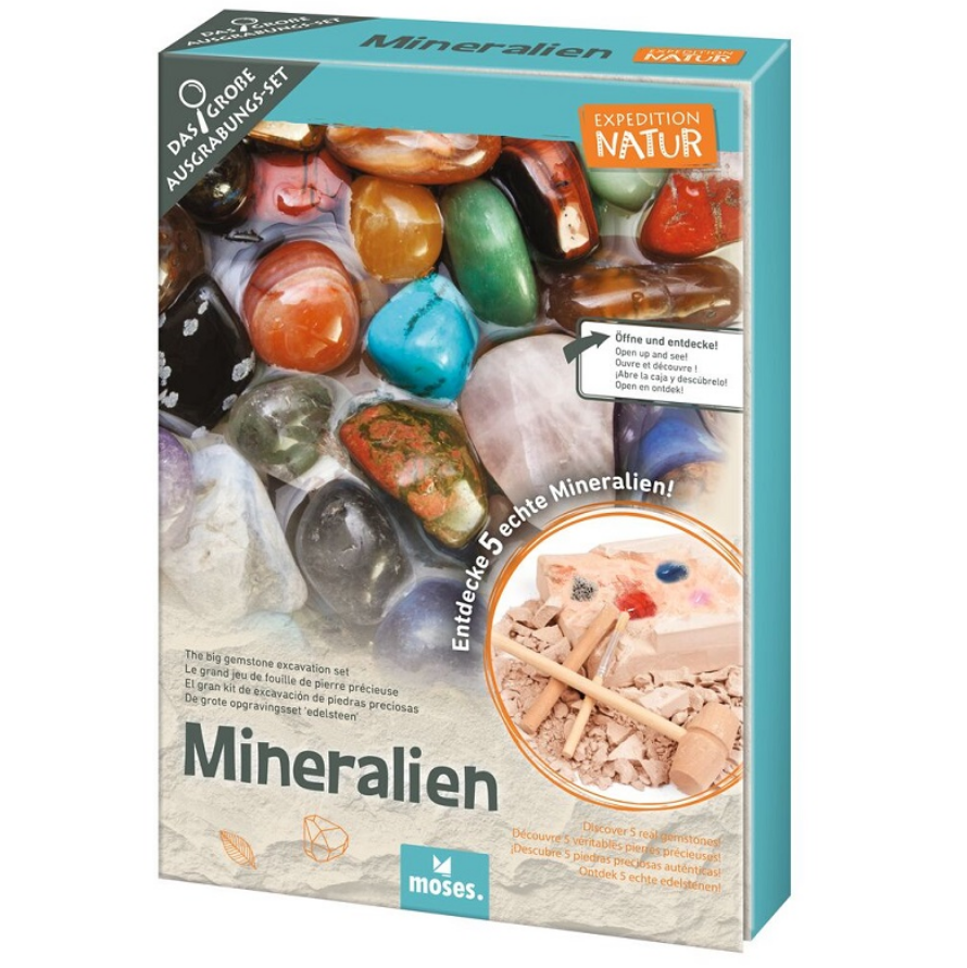 Σετ ανασκαφής ορυκτών από γύψο με 5 πραγματικά ορυκτά. Περιέχει εργαλεία ανασκαφής από ξύλο σημύδας, μεγεθυντικού φακού,τσάντα αποθήκευσης, αλυσίδα με μενταγιόν και ένα έγχρωμο φυλλάδιο με συναρπαστικές πληροφορίες.