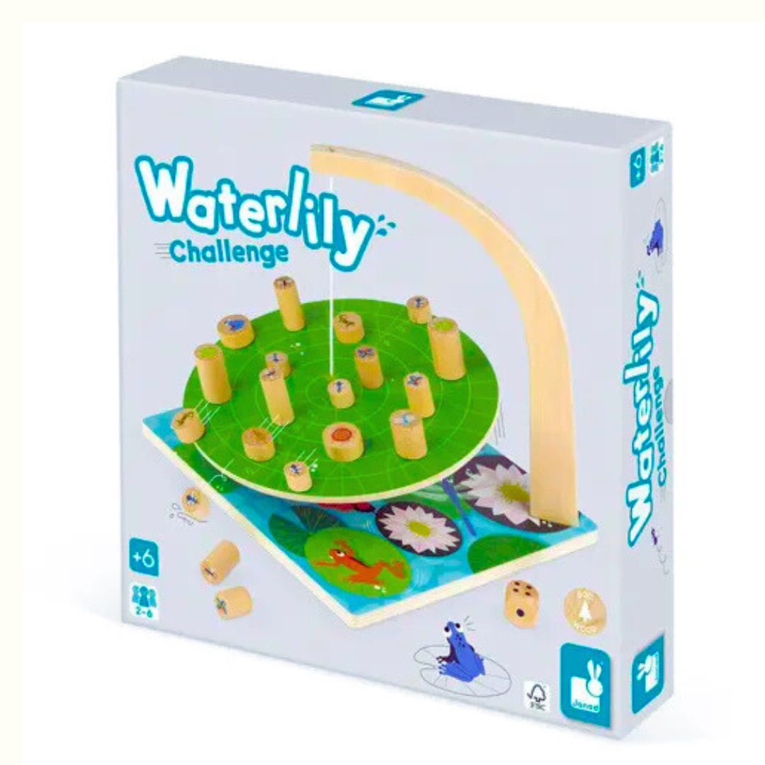 Κάθε παίκτης επιλέγει κι έπειτα τοποθετεί ένα ζώο ή ένα έντομο πάνω στο νούφαρο χωρίς να το κάνει να βουλιάξει! Προσοχή, χάνει όποιος κάνει τα κομμάτια να πέσουν!!! Θα χρειαστεί να είστε επιδέξιοι και να επιστρατεύσετε τη στρατηγική σας για να επιβιώσετε στη λίμνη! Το παιχνίδι αυτό αναπτύσσει την επιδεξιότητα και τη συγκέντρωση! Ένα ξύλινο ταμπλό καλυμμένο με μια λίμνη από νούφαρα με 42 πιόνια διαφόρων μεγεθών. Από 2 έως 6 παίκτες. Ταμπλό: 22 x 22 x 1 εκ. Νούφαρο: 21,5 x 21,5 εκ. Κανόνες του παιχνιδιού στα γαλλικά, αγγλικά, γερμανικά, ολλανδικά, ισπανικά και ιταλικά. Συσκευασία δώρου. Ξύλο: κόντρα πλακέ εκτός από τα 42 πιόνια που είναι φτιαγμένα από ξύλο οξιάς. Εκτύπωση με θερμική μεταφορά ματ μεμβράνης βινυλίου.