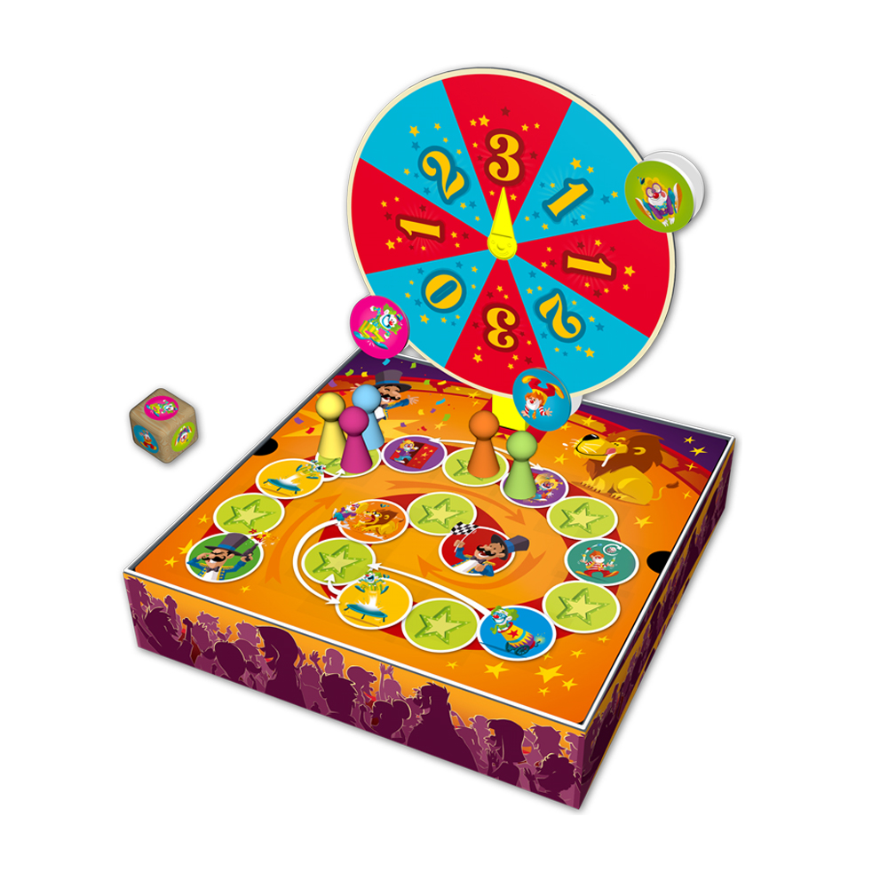 Περιεχόμενα: -1 Περιστρεφόμενος Τροχός (αποτελείται από έναν δίσκο και ένα βέλος) -1 Στύλος (ο άξονας του τροχού) -1 Ταμπλό (αρένα) -3 Ακροβάτες (κλιπ) -5 Πιόνια -1 Ζάρι