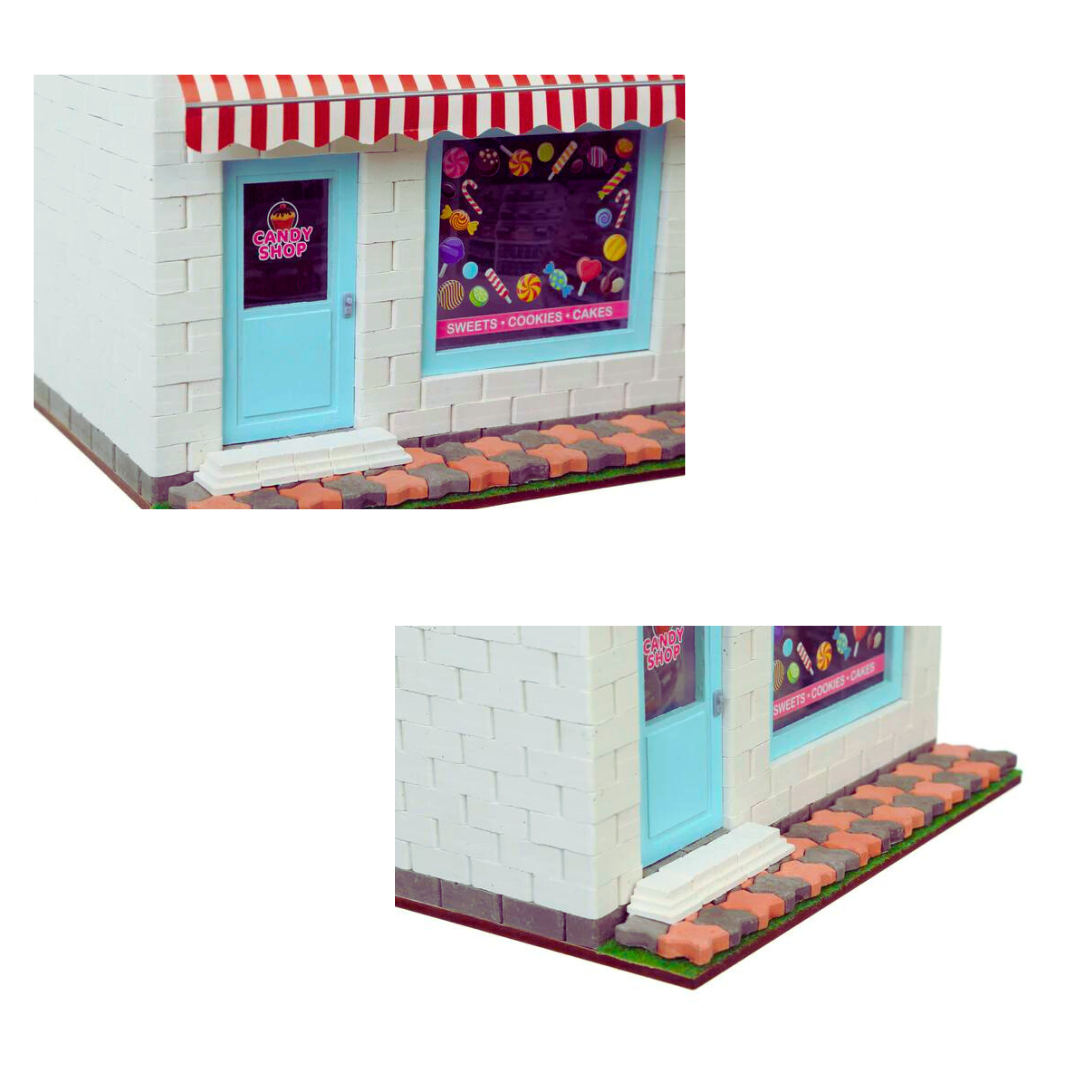 Η κατασκευή αποτελείται από αληθινά τούβλα σε μικρό μέγεθος, τα οποία κολλάνε μεταξύ τους με την ειδική μη τοξική κόλλα που βρίσκεται στη συσκευασία. Σε περίπτωση λάθους, η κόλλα μπορεί να διαλυθεί με λίγο νερό.