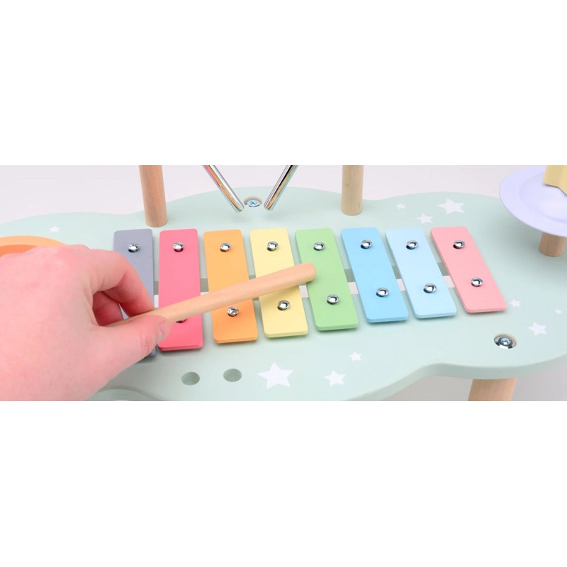 Εισαγωγή στον κόσμο της μουσικής με το υπέροχο ξύλινο μουσικό τραπεζάκι. Για τους μικρούς μουσικούς του σπιτιού σας! Δεν είναι το τυπικό σας ξυλόφωνο. Αυτό το τραπέζι μουσικής συνδυάζει διάφορα μουσικά όργανα: ξυλόφωνο, τρίγωνο, κύμβαλα και μικρό τύμπανο, όλα σε ένα, για να καθοδηγήσει τα παιδιά σας στα πρώτα μουσικά βήματα. Κατασκευασμένο από στιβαρό ξύλο.