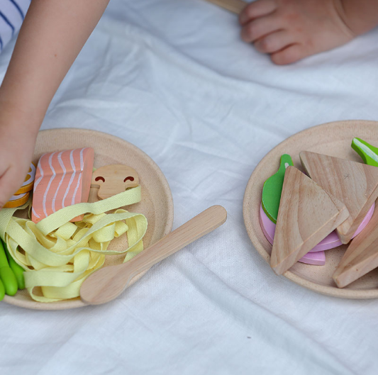 Μετατρέψτε τον χώρο παιχνιδιού του παιδιού σας σε μια φανταστική κουζίνα με αυτό το σετ ζυμαρικών. Περιλαμβάνει μακαρόνια, 1 φιλέτο σολομού, 3 σπαράγγια, 2 φέτες λεμόνι, 2 μανιτάρια, 1 πιρούνι, 1 κουτάλι και 1 πιατάκι. Διαστάσεις: Ø 16.0 x 1.9 cm | Ø 6.3 x 0.7 inch (πιατάκι)