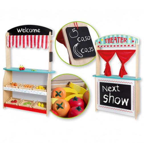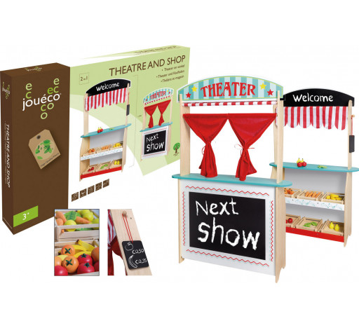 Οι μικροί μας φίλοι θα αποφασίσουν αν θέλουν να παίξουν μια παράσταση ή αν θα προσκαλέσουν τους φίλους στους στο κατάστημα τους. Η φαντασία των παιδιών ελεύθερη … και το παιχνίδι αρχίζει. Eνα οικολογικό εκπαιδευτικό παιχνίδι που το παιδί παίζοντας: θα αναπτύξει τη σκέψη ,θα βοηθήσει στο συντονισμό χεριού-ματιού, θα αναπτύξει τη δεξιότητα αντίληψης.