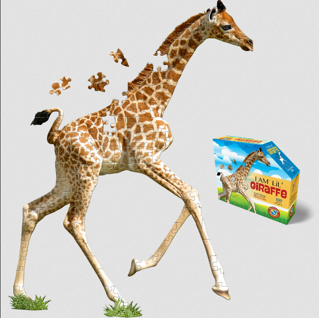 Ενα μοναδικό παζλ σε σχήμα καμηλοπάρδαλης! Όταν ολοκληρωθεί το παζλ έχει μέγεθος αφίσας και τα κομμάτια είναι αρκετά μεγάλα για εύκολο χειρισμό. Κάθε παζλ συνοδεύεται από ένα διασκεδαστικό ένθετο, καθώς και την εικόνα του ζώου ως αναφορά. Τεμάχια: 100
