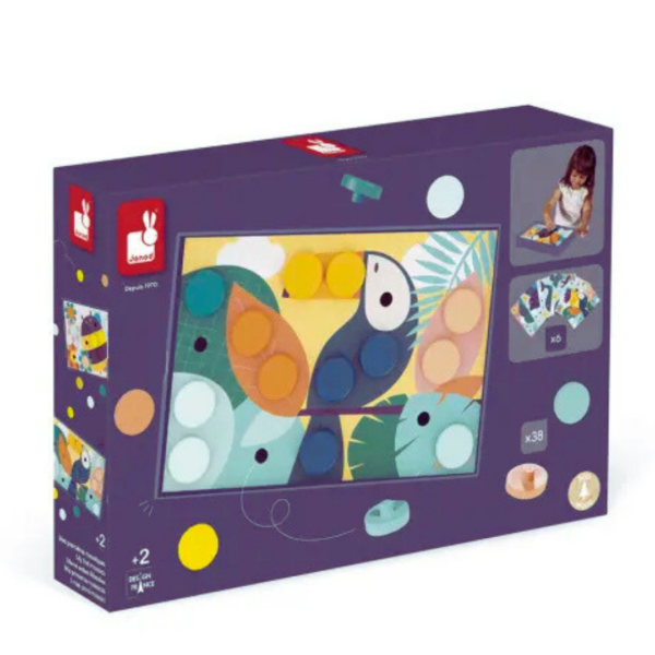 Ανακαλύψτε τα χρώματα και τις διαφορετικές τους αποχρώσεις με αυτές τις όμορφες εικόνες. Αφήστε η φαντασία του παιδιού να καλπάσει ενώ εκείνο θα μαθαίνει τα χρώματα με τα πρώτα του ξύλινα μωσαϊκά. Τα κομμάτια είναι αρκετά μεγάλα για να κρατούν και να τα χειρίζονται μικρά παιδιά. Αναπτύσσει τις λεπτές κινητικές δεξιότητες. Περιλαμβάνει 6 διάτρητες κάρτες και 38 ξύλινα κομμάτια. Έξυπνο! Το κουτί μπορεί επίσης να χρησιμοποιηθεί ως στήριγμα για τις κάρτες. Εκπαιδευτικό παιχνίδι πρώτης ηλικίας.