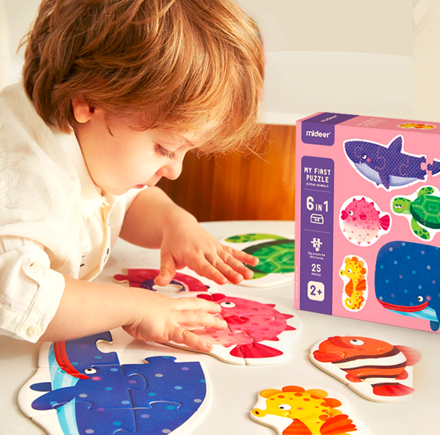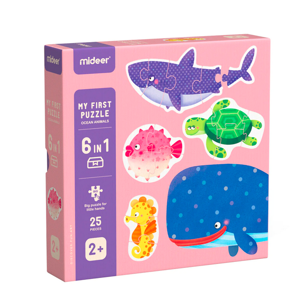 Η σειρά My First Puzzle έχει σχεδιαστεί για τη διαφώτιση των μωρών και καλύπτει τις αυξανόμενες ανάγκες τους. Ο σχεδιασμός μεγάλων κομματιών το καθιστά κατάλληλο για πιάσιμο και άσκηση δύναμης χεριών από μικρά χεράκια. Αυτό το παζλ διαθέτει 6 ζώα βυθού με υφή και έντονα χρώματα για αναγνωριση για να βοηθήσει τα παιδιά να αναγνωρίσουν τη θαλάσσια ζωή. Περιλαμβάνονται: 6 παζλ Αριθμός τεμαχίων: 3 τεμάχια, 3 τεμάχια, 4 τεμάχια, 4 τεμάχια, 5 τεμάχια, 5 τεμάχια