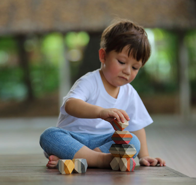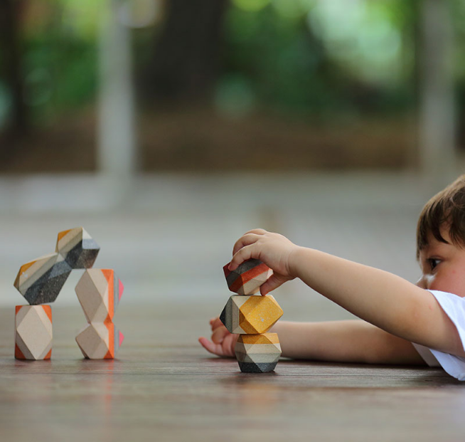 Μπορείτε να στοιβάξετε αυτούς τους 6 ξύλινους “πολύτιμους λίθους” με διάφορους τρόπους και να χτίσετε μοναδικούς πύργους και τοπία! Τα παιδιά απολαμβάνουν να παρατηρούν πώς τα διαφορετικά σχήματα ενώνονται μεταξύ τους κατανοώντας έτσι τις βασικές αρχές της ισορροπίας. Εκτός από τη διασκέδαση των παιδιών τα βραχάκια μπορούν να διακοσμήσουν όμορφα το σπίτι σας! Διαστάσεις: 4.0 x 10.0 x 4.0 cm