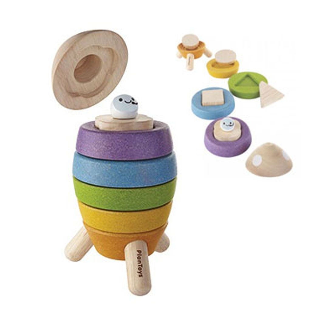 Φτιάξτε τον πύραυλο ταιριάζοντας και στοιβάζοντας τα κομμάτια. Τοποθετήστε τον αστροναύτη στη θέση του και αρχίστε την αντίστροφη μέτρηση 3..2..1. Διαστάσεις: 11.7 x 11.3 x 17.7 cm