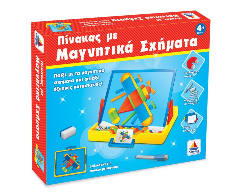 Με τον πίνακα δύο όψεων το παιδί μπορεί να σχεδιάσει εικόνες με τα μαγνητικά σχήματα, να ζωγραφίσει με τις κιμωλίες να γράψει με τον μαρκαδόρο ή να σβήσει με το σφουγγαράκι. Και όλα αυτά μαζί σε ένα βαλιτσάκι για εύκολη μεταφορά!