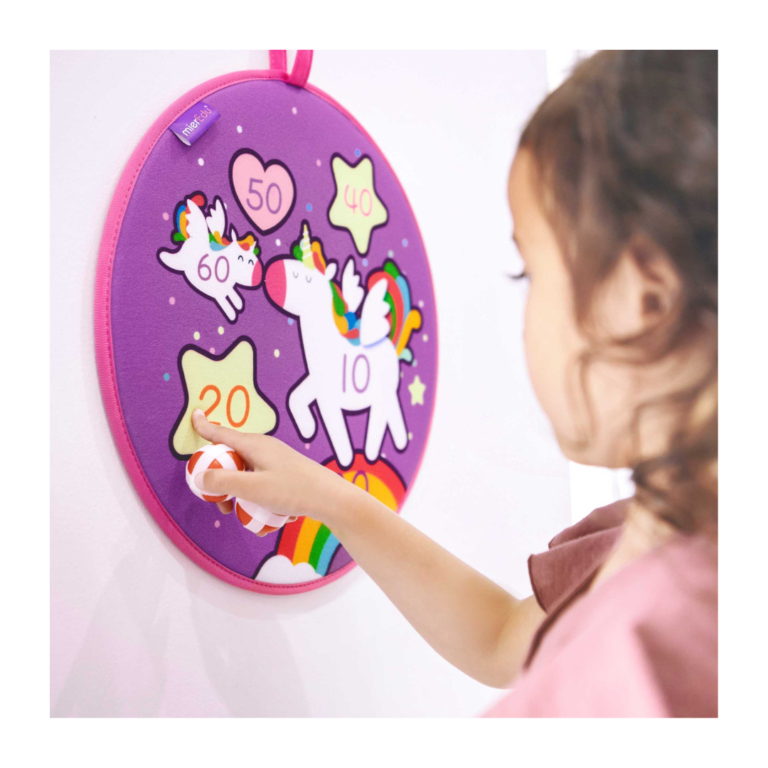 Ένας όμορφος μαλακός πίνακας με ίνες για ατέλειωτη διασκέδαση. Αυτό το παιχνίδι με βελάκια επιτρέπει στα παιδιά να εξασκήσουν την στόχευσή τους με έξι μπάλες και να μάθουν παράλληλα και τους αριθμούς. Μπορεί να κρεμαστεί στον τοίχο ή την πόρτα. Ιδανικό για ομαδικό παιχνίδι ή πάρτι.