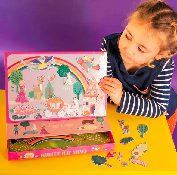 Μαγνητικό παιχνίδι με θέμα τη Χώρα του Παραμυθιού. Ένα υπέροχο κουτί που διαθέτει 2 εναλλακτικά σκηνικά εικόνων και 50 μαγνητικά κομμάτια. Το παιδί περνάει ευχάριστα την ώρα του καθώς δημιουργεί όμορφες εικόνες ανάλογα με τη φαντασία και τη δημιουργικότητά του. Διπλώστε το καπάκι του κουτιού και αποθηκεύστε τα μαγνητικά κομμάτια στο συρτάρι. Διαστάσεις συσκευασίας: 30,0 x 4,0 x 21,0