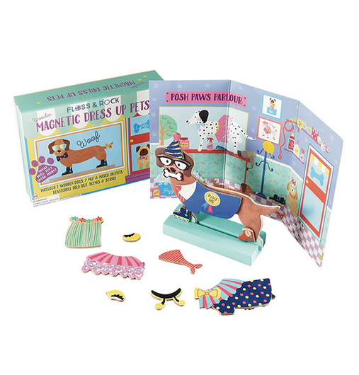 Περιέχει 2 κατοικίδια σκυλάκια, 1 βάση, φόντο διπλής όψης και διάφορα ρουχαλάκια!
