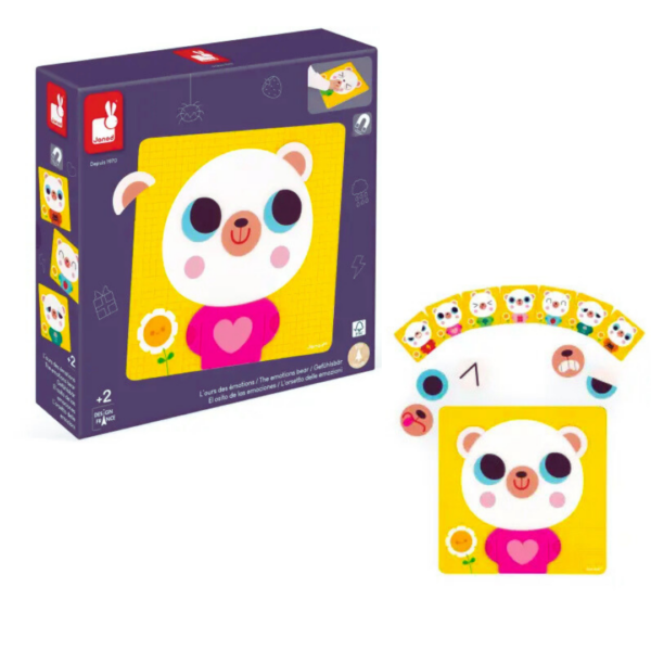Ανακάλυψε τον μαγικό κόσμο των συναισθημάτων με αυτό το μαγνητικό ξύλινο παιχνίδι! Ιδανικό για να καλλιεργήσεις την παρατήρηση και την έκφραση, μπορείς να αναπαράγεις τις 7 κάρτες-πρότυπα στο μεγάλο ταμπλό, χρησιμοποιώντας τους 30 μαγνήτες που περιλαμβάνονται, οι οποίοι απεικονίζουν τις εκφράσεις προσώπου και τα ρούχα της μικρής αρκούδας. Μια δημιουργική και εκπαιδευτική εμπειρία, που σε βοηθά να κατανοήσεις τα συναισθήματα και να τα εκφράσεις με τον δικό σου τρόπο!