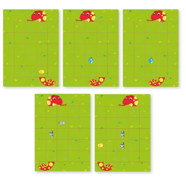 Το πολύχρωμο, μαγνητικό παιχνίδι διαθέτει 22 μεγάλες καρτέλες που κάθε μία έχει σε διαφορετικό μέρος το φαγητό του χαριτωμένου μικρού φιδιού.